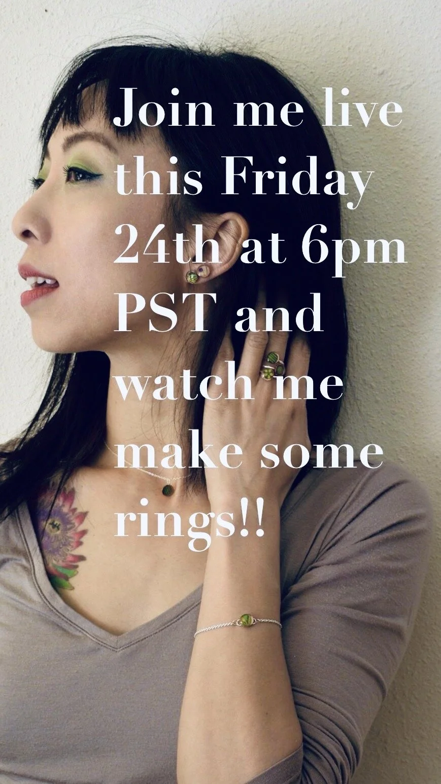 Join me this Friday 24th at 6pm pst, where I will be having some drinks 🍷 and making some rings 💍.